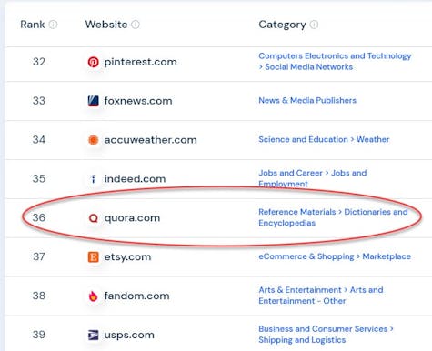 Ok, just about every man and his dog know Quora - but what you may not know is this website/app is ranked 36 in the most visited websites in the world!